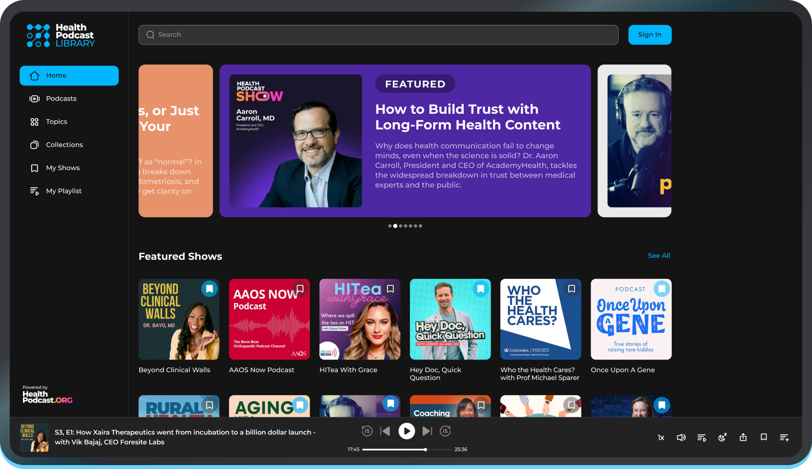 Health Podcast Library curates health podcasts from trusted sources with credible expertise and authentic experiences.